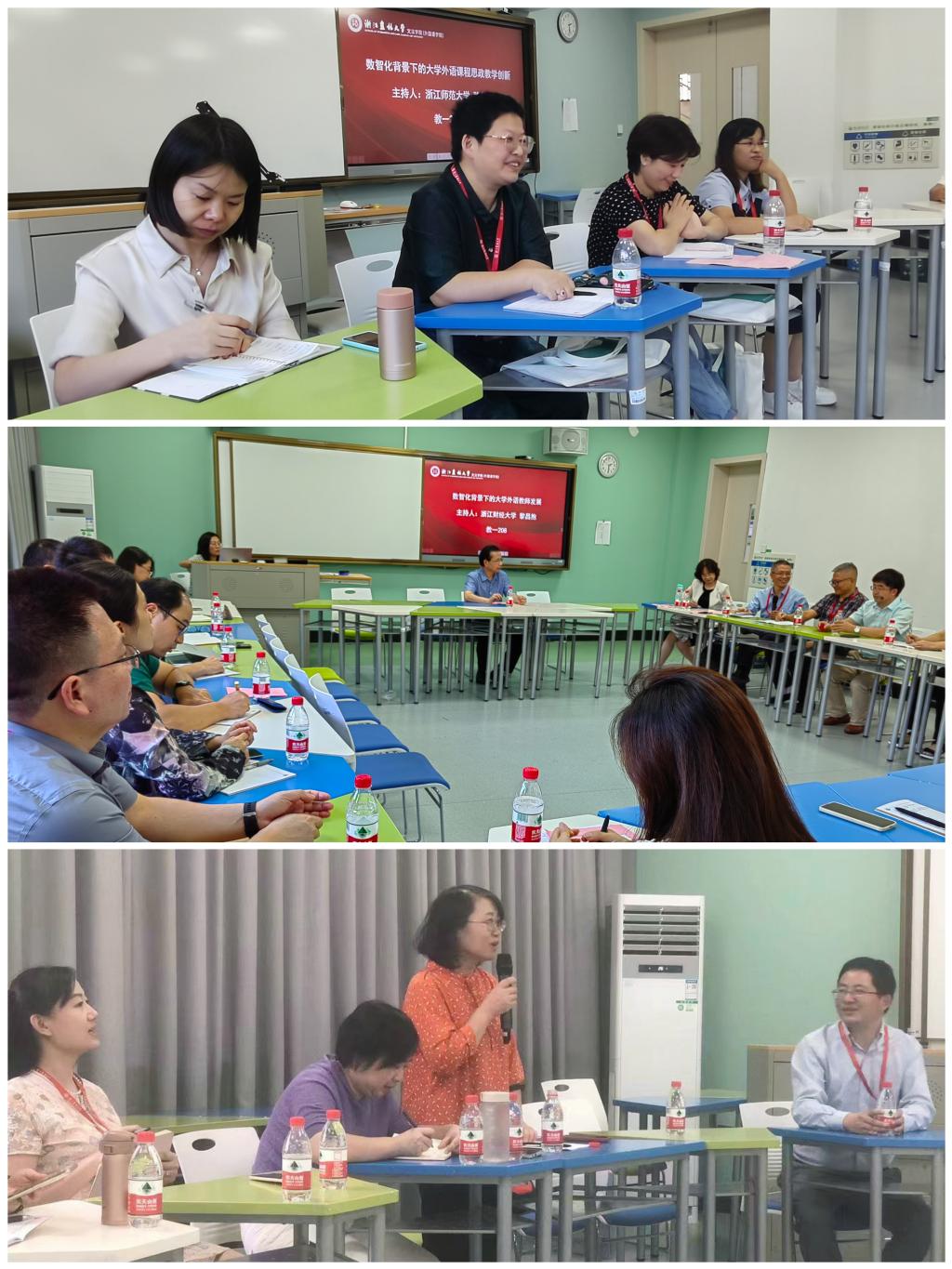 下午,与会老师们围绕“数智化背景下的大学外语课程思政教学创新”、“数智化背景下的大学外语教师发展”、“数智化背景下的校本英语考试开发与研究”三个主题分别召开了专题研讨。分组研讨分别由浙江师范大学外国语学院副院长骆传伟、浙江财经大学外国语学院院长黎昌抱、浙江大学外国语学院副院长闵尚超主持。来自省内各所高校的专家学者分享了各自学校外语教学经验与成果,我校教师也就目前正在进行的大学英语教学改革和同行进行了深入而卓有成效的探讨。研讨过后,各组主持人就讨论结果进行了总结。