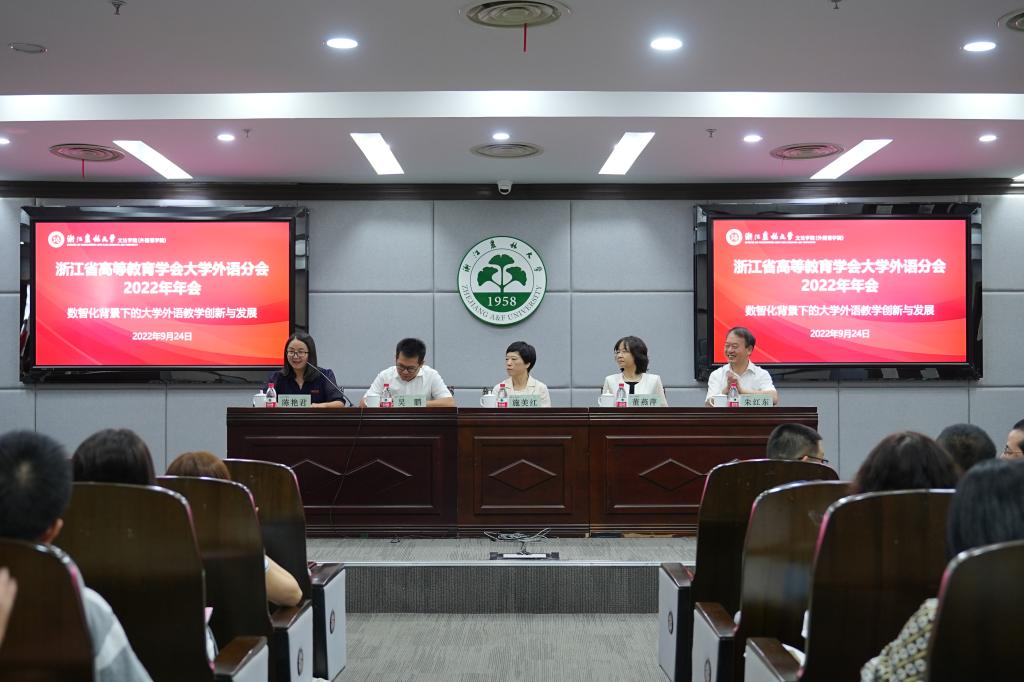 之后,浙江省高等教育学会大学外语分会会长董燕萍从教材建设、教师发展、人才培养三个方面介绍并总结了浙江各高校在大学外语教育的开拓创新上取得的成果;指出2022年大学外语教育面临的机遇与挑战:在新文科建设和数智化的时代背景下,大学外语教育工作者要以教育教学新发展理念为引领,以数智化技术为支撑,共商外语教育大计,共谋外语教育新发展。