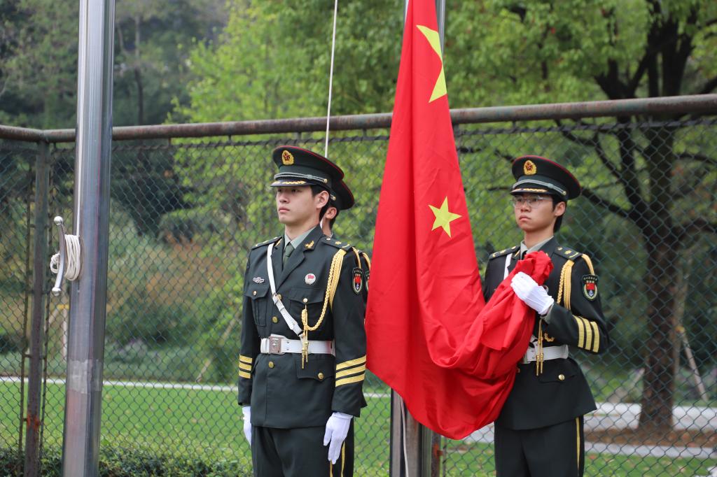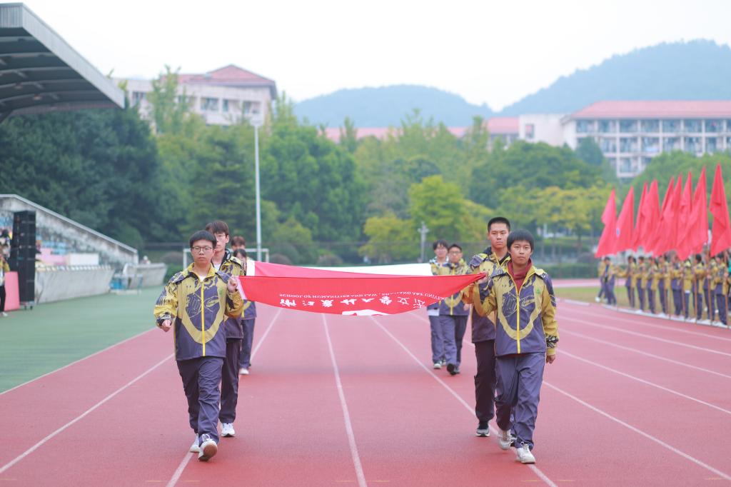 开幕式上,在庄严的国歌声中,鲜艳的五星红旗冉冉升起。激昂的进行曲中,院旗和院运动会会旗依次入场。