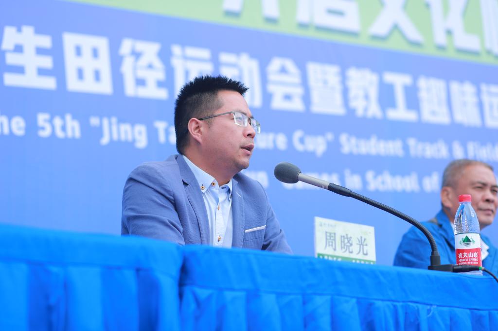 10月8日,威尼斯432888cam第五届学生田径运动会暨教工趣味运动会在东湖校区田径场举行。校学工部部长、学生处处长周晓光、校体军部主任冯祎中、校工会副主席郭爱枝、学院党政领导班子成员出席开幕式。潘军可主持开幕式。学院1000余名师生代表参加活动。