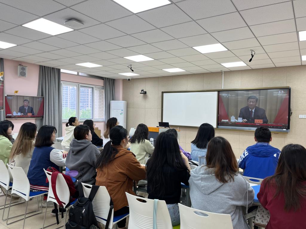 观看过程中,大家认真聆听并记录大会的重要内容。习近平总书记的重要讲话在学院师生中引起了强烈反响。学院师生互相分享、交流心得感悟。