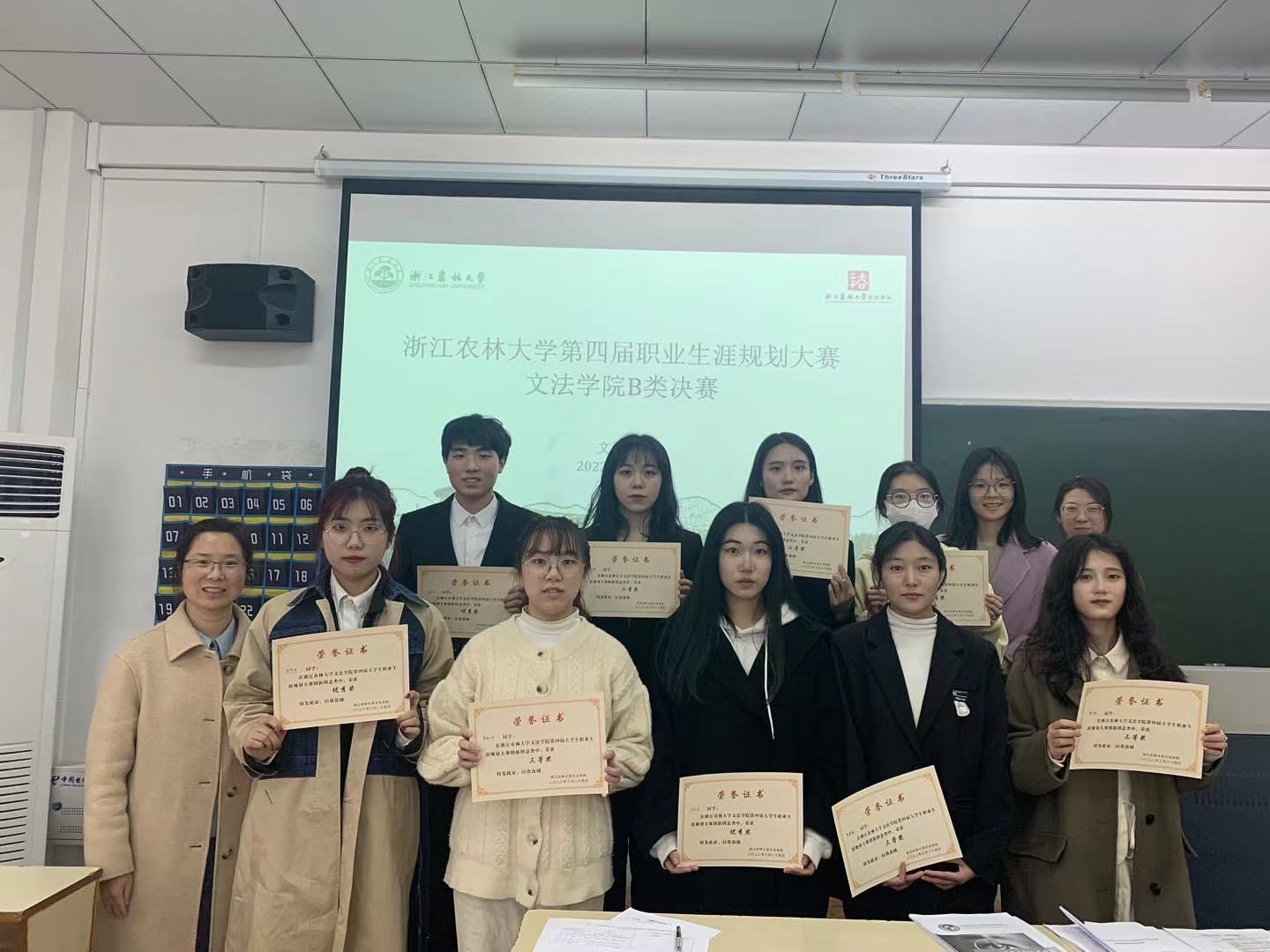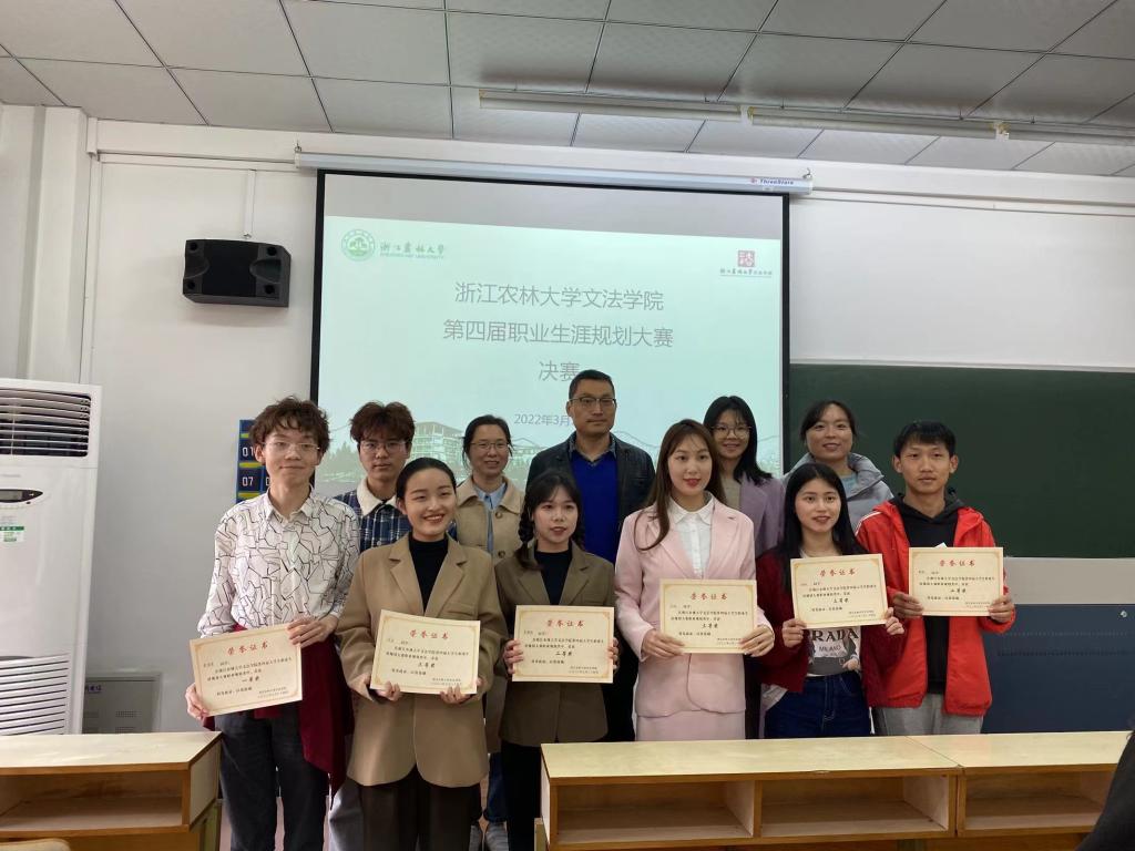 通过层层选拔,A类9名同学、B类9组同学进入决赛,进行最后的角逐。参赛选手按照顺序进行PPT展示和答辩。A组选手分别从自我介绍、自我分析、职业认知等方面对自己理想的职业进行了规划;B组选手们则全方位展示了其创新创意项目的技术和产品、商业模式及实施方案等,充分展现了文法学子朝气蓬勃的精神面貌和锐意进取的学习态度。每组同学都在有限的时间内展现出了本组精彩的项目成果。每组选手展示完毕后,评委们都对其进行了专业的点评和中肯的指导意见。活动最后,现场嘉宾为获奖选手颁奖并合影留念。