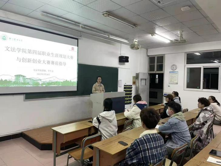 培训会上,杨优优老师阐述了参加大赛的意义,围绕职业生涯规划书的撰写,详细介绍了大学生职业生涯规划大赛的作品分类、比赛流程及主题等内容,强调了项目的文本撰写要点,并对往届省级比赛中的获奖作品进行了分析,播放了比赛现场录像。杨优优老师还告知选手在比赛的各个阶段中需要注意的地方,以及如何提升完善作品的技巧,鼓励选手挑战提升自我。